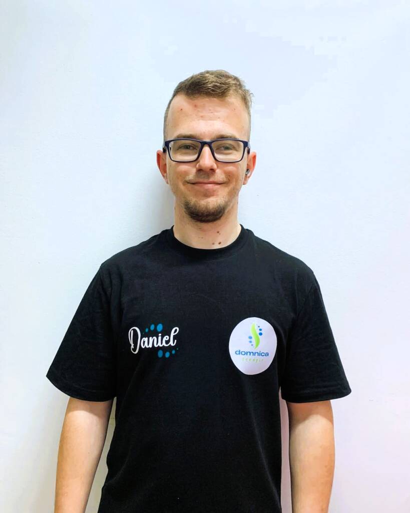 Daniel este absolvent al Liceului Special pentru Deficiențe de Vedere din Cluj-Napoca, acesta s-a alăturat echipei Domnica Terapie din dorința de a evolua și de a-și perfecționa abilitățile de maseur. Ceea ce îl definește este ambiția, empatia și pasiunea pentru domeniul recuperării.